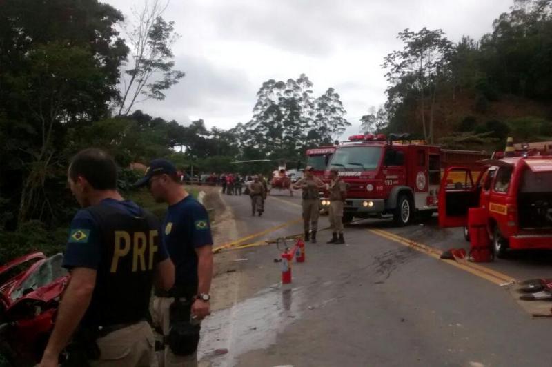 Um acidente com ônibus deixou cinco mortos e pelo menos 15 feridos na BR-280 em Corupá, no Norte de Santa Catarina. A batida entre um carro com placas de Guaramirim e um ônibus de turismo da empresa Mirotur com placas de Sombrio, ocorreu por volta das 8h30 no km 93.
