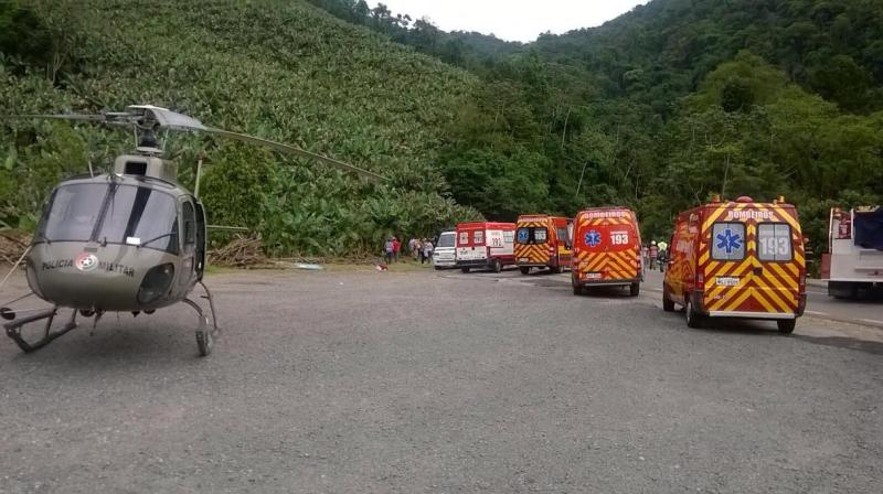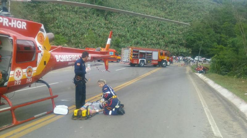 Os helicópteros Águia e Arcanjo auxiliam no resgate das vítimas. Nove ambulâncias além de uma viatura de combate a incêndio e outra de resgate veicular participaram dos trabalhos de socorro.