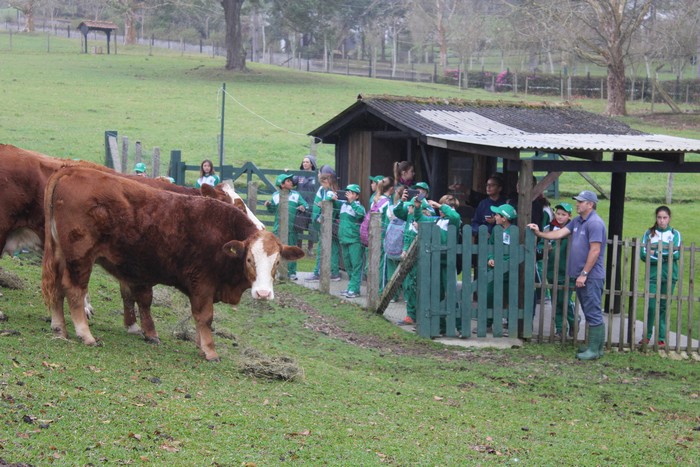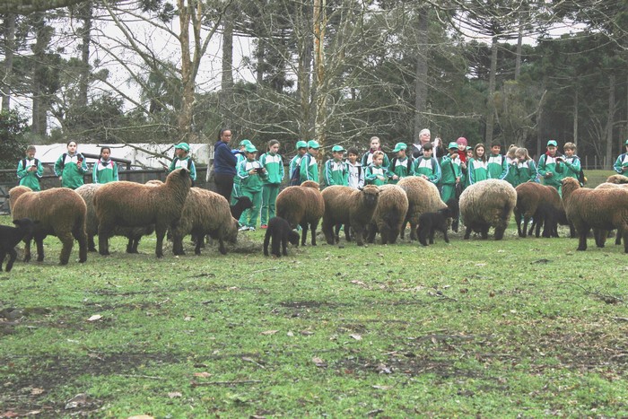 A primeira a ser visitada foi a Cabanha Campo Alegre, onde se trabalha com a criação de animais da raça Suffolk. Nesta propriedade os alunos foram recebidos pelo funcionário responsável Darci, onde puderam visitar o Aprisco e as instalações. Na ocasião a Médica Veterinária da Cidasc Arquidelques C. Alves explanou sobre o manejo, alimentação, hábitos e características dos ovinos e bovinos, observando aspectos do bem estar animal. Nesta propriedade a Engenheira Agrônoma Francieli M. C. Schuhli conversou sobre pastagens e a importância da qualidade dos insumos adquiridos. No final da visita os alunos puderam saborear um lanche com produtos produzidos no município (iogurtes, embutidos, geléias, mel, pães e queijos).