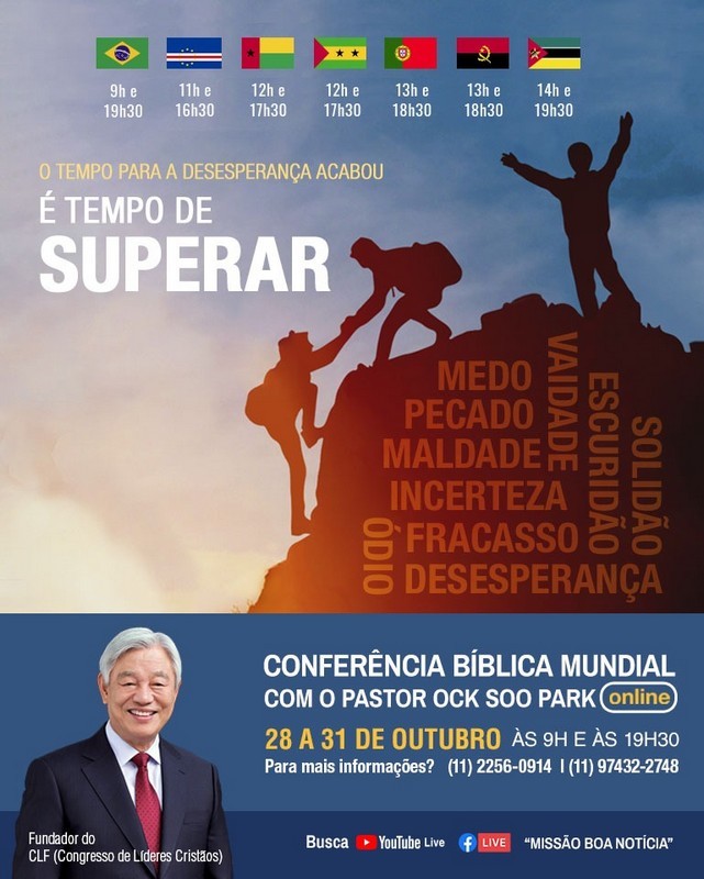 Nos dias 28 a 31 de outubro, a Igreja Missão Boa Notícia realizará a Conferência Bíblica Mundial online 2020.