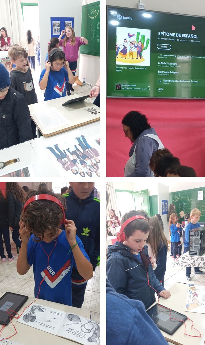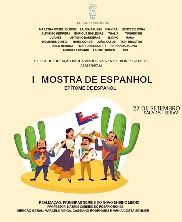 No último dia 27 toda a Escola de Educação Básica Virgílio Várzea visitou a exposição do idioma de espanhol (na sala 15) com conteúdo estudado no primeiro e segundo trimestre (presente do indicativo, pronombres interrogativos, dramaturgia, el alfabeto, hoja de vida, informal e formal, poesías e cartilhas).