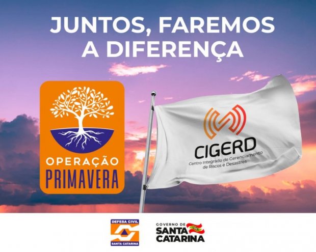 O evento de lançamento da “Operação Primavera” será realizado às 16 horas, no Centro Integrado de Gerenciamento de Riscos e Desastres de Santa Catarina (Cigerd), em Florianópolis, com integração por videoconferência com os demais Cigerd regionais.