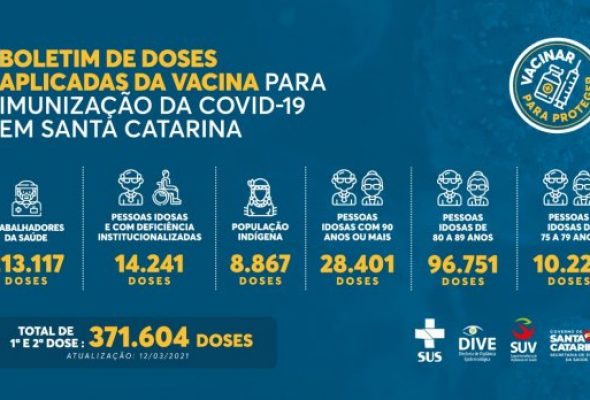 Vacinação em SC: 371,6 mil doses da vacina contra a Covid-19 foram aplicadas no estado
