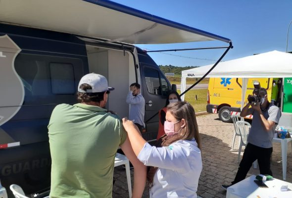 Caminhoneiros recebem vacina contra a gripe em posto de serviço da BR-116/PR