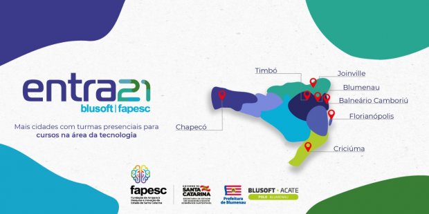 O Programa Entra21, curso que pretende formar cerca de seis mil profissionais na área da tecnologia em Santa Catarina, terá mais cinco turmas presenciais em diferentes regiões do Estado. Além das 16 do Vale do Itajaí, haverá aulas presenciais em Florianópolis, Joinville, Chapecó, Criciúma e Balneário Camboriú.