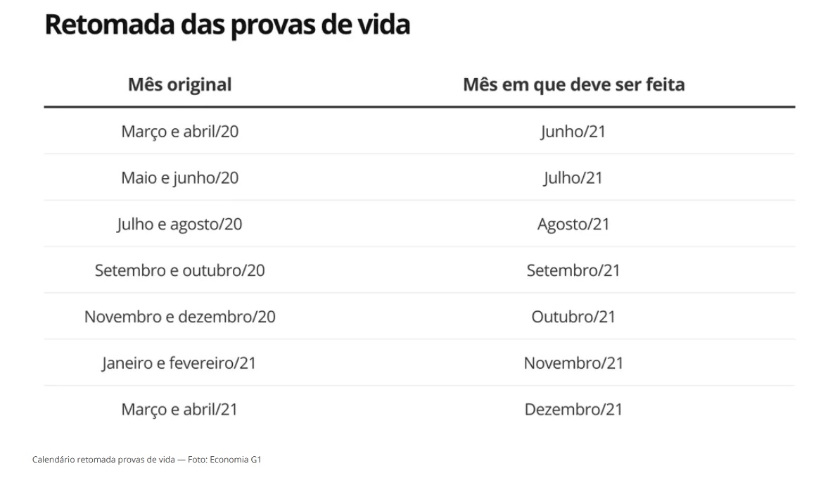 Calendário para regularizar situação vai até dezembro. A prova de vida estava suspensa desde o ano passado por causa da pandemia.