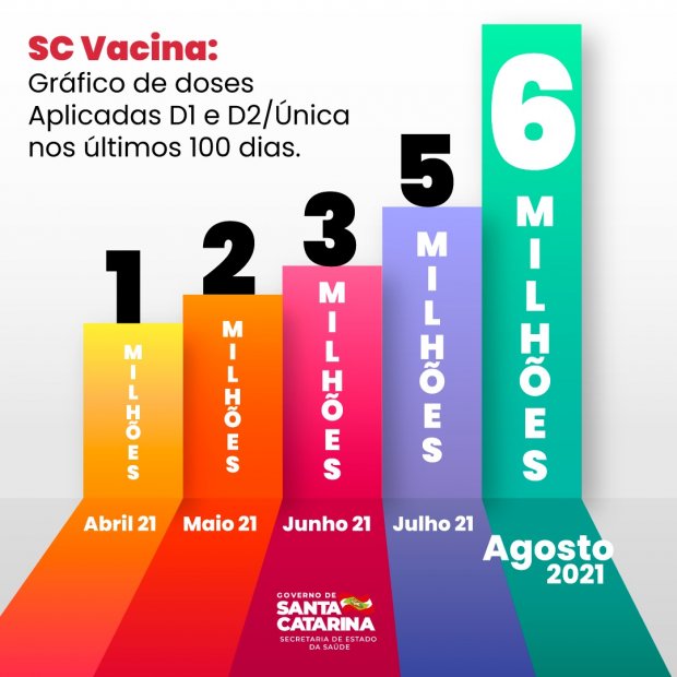 Até o dia 31 de julho, o Estado tinha aplicado 5.051.511 de doses. Com o novo registro, percebe-se uma aceleração da aplicação dos imunizantes e do registro feito pelos municípios nos portais da transparência. “Nós estamos em diálogo permanente com todas as cidades catarinenses para que esse registro seja em tempo real. É imprescindível que trabalhemos em conjunto para deixarmos esses dados transparentes. Não deixaremos nenhum catarinense para trás”, finalizou Motta Ribeiro.