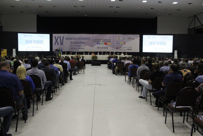 Teve início nesta terça-feira (14) o maior evento Municipalista de Santa Catarina. Promovido pela Federação Catarinense de Municípios – FECAM e pelas Associações Regionais de Municípios, o XV Congresso Catarinense de Municípios foi aberto nesta manhã. Cerca de mil participantes entre prefeitos, vice-prefeitos, secretários, vereadores, técnicos municipais de todo o estado, estarão reunidos em Joinville, na Expoville, até quinta-feira (16).