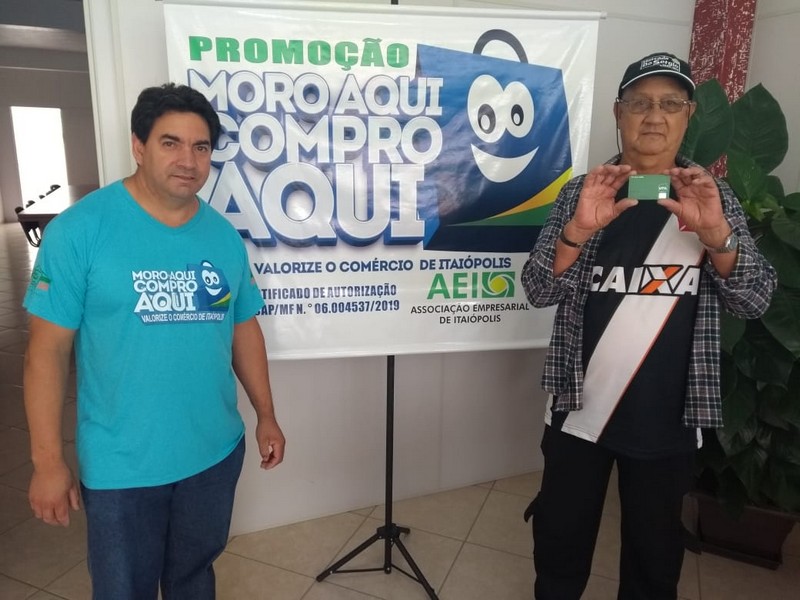 No inÃcio da tarde do último dia 3 (segunda-feira) a Associação Empresarial e Câmara dos Dirigentes Lojistas – AEI/CDL de Itaiópolis realizou na Praça Brasil o sorteio da campanha ‘Moro aqui, Compro aqui’. Foram sorteados R$ 10 mil em vales compras.