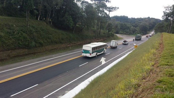 A concessionária Autopista Planalto Sul, responsável pela rodovia BR-116 entre Curitiba e Capão Alto, na divisa com Rio Grande do Sul, liberou nesta segunda-feira (15) mais um segmento de terceiras faixas no trecho de Santa Catarina.