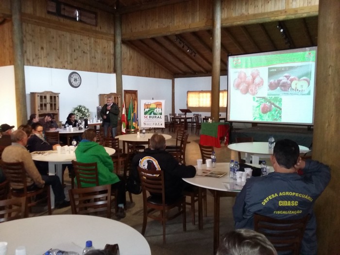 Assuntos pertinentes e atuais relativos à fruticultura foram abordados pelos palestrantes. A engenheira-agrônoma Camila Pereira Croge, do escritório municipal da Epagri de Papanduva, abordou o tema “Produção de pequenas frutas”. Já o Analista de Mercado e Gerente do Escritório de Negócios da Embrapa Canoinhas, engenheiro-agrônomo Nelson Pires Feldberg, apresentou duas palestras: ”Importância do material de propagação para fruteiras” e “Variedades de pêssego e Nectarina validadas pela Embrapa Canoinhas e adaptadas ao clima do Planalto Norte Catarinense”. Jânio José Seccon, trabalhou o assunto Possibilidades de expansão da fruticultura no Planalto Norte Catarinense. Na sequência o líder do Programa Políticas Públicas da EPAGRI para o Planalto Norte, engenheiro-agrônomo Gilberto Neppel, apresentou o Programa de subvenção para cobertura de pomares de maçã, frutas de caroço e uva, do Governo do Estado. Encerrando a programação do dia, a representante da Ceasa Joinville, Sirley do Carmo Lehmkuhl Goedert, falou sobre as Oportunidades na CEASA Joinville para os agricultores do Planalto Norte.