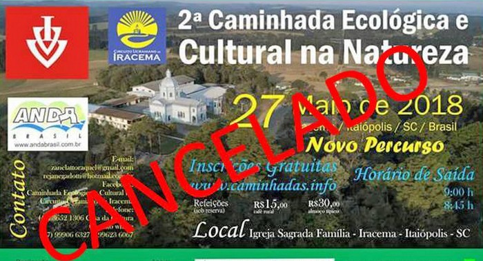 Devido à greve dos caminhoneiros, a 2ª Caminhada Ecológica e Cultural no Circuito Ucraniano que aconteceria neste domingo em Itaiópolis, foi cancelada.Â