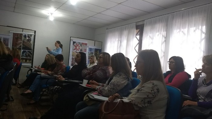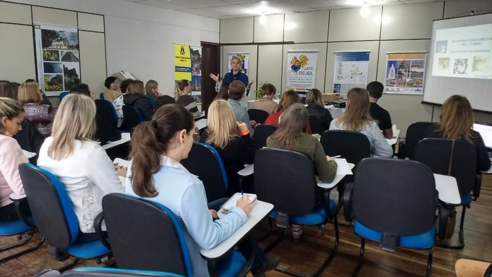 O trabalho de oficinas de educação patrimonial foi orientado pela educadora do IPHAN/SC, Carla Ferreira Cruz, onde estiveram presentes os professores da rede municipal de ensino, universitários e representantes do Conselho Municipal de Turismo.