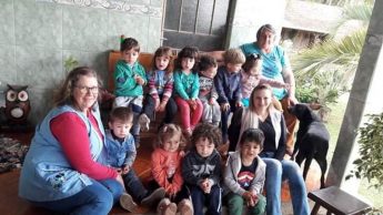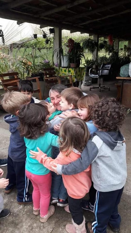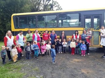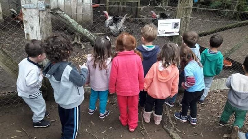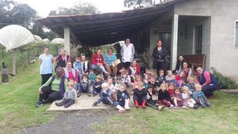 Na casa do Edemar Bernardo Seidel, mais conhecido como “Alemão”, e da Dona Julieta, as crianças tiveram a oportunidade de conhecer os animais da propriedade e a plantação de morangos.