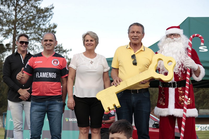 A chegada do Papai Noel foi uma promoção do Sicoob Credinorte com apoio da Prefeitura, do comércio local, CDL, e outras entidades.