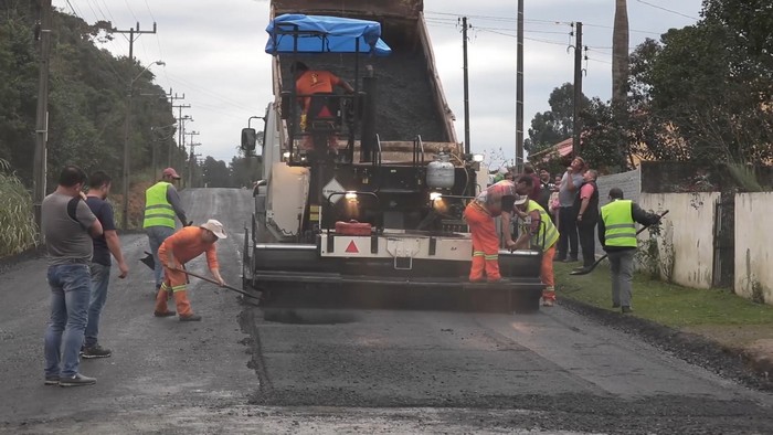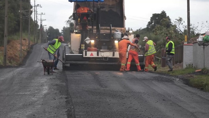 No vÃdeo o prefeito conta que a pavimentação da rua Henrique Becker está sendo feita com recursos próprios e que as obras de base e sub-base foram realizadas pela Prefeitura, sendo contratada a empresa apenas para executar o serviço de colocação do asfalto. Fato que ele apontou como inédito no municÃpio.