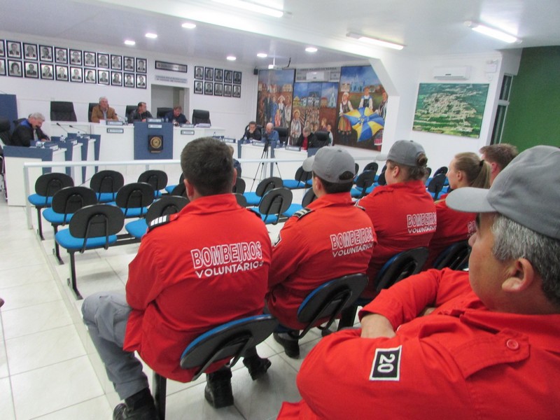 Os vereadores entregaram uma Moção de Aplausos para o Corpo de Bombeiros Voluntários. A homenagem foi prestada em comemoração ao 24º aniversário da criação da corporação no municÃpio. A entrega ocorreu na sessão ordinária da Câmara do dia 02 deste mês.
