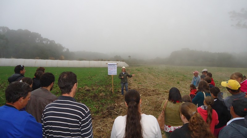 Os agricultores puderam presenciar diversas atividades na propriedade da famÃlia Jankovski, começando com o uso de caÃvas e potreiros, que foram melhorados com o plantio de missioneira-gigante para a produção de ovinos e bovinos. Após isso, puderam discutir os resultados da safra de milho de base agroecológica, na qual foi usada a semente do milho Catarina, variedade de polinização aberta desenvolvida pela Epagri. A área foi trabalhada nos preceitos do sistema de plantio direto, com correção do solo com calcário, pó de rocha, fosfato natural e cinza leve de biomassa, o plantio de adubação verde de inverno com ervilhaca e aveia-preta e o uso de biofertilizante anaeróbico como adubação de cobertura. Também foi apresentado o inÃcio do trabalho da famÃlia no Sistema de Plantio Direto de Hortaliças (SPDH), com a correção do solo e o plantio de adubação verde para as culturas da cebola e beterraba.