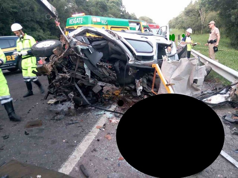O motorista de 35 anos do veÃculo Fiat/Pálio Weekend, placas de Clevelândia/PR, devido as gravidades do acidente, não resistiu aos ferimentos e foi encontrado com ausência total dos sinais vitais e ficou aos cuidados da equipe do IGP.