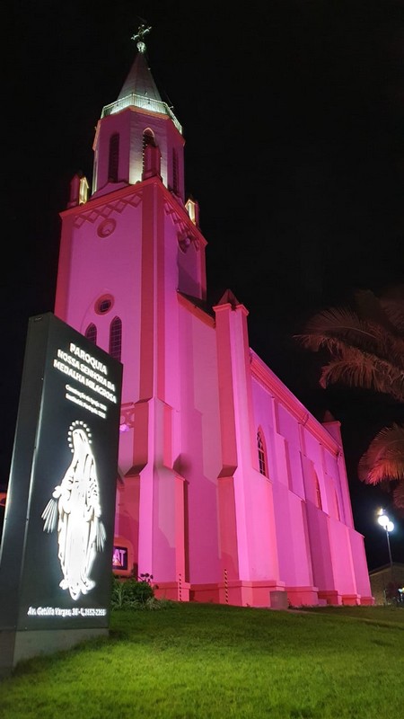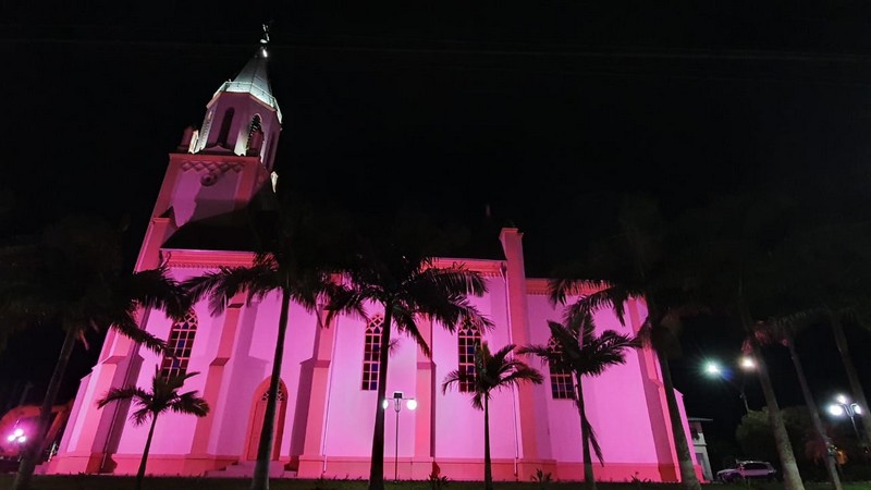 19 de outubro marca o Dia Internacional do Combate ao Câncer de Mama. Para celebrar a data, a Igreja Nossa Senhora da Medalha Milagrosa de Itaiópolis-SC é iluminada de rosa, em apoio e incentivo à tantas mulheres que vivenciaram a doença ou por ela são acometidas.