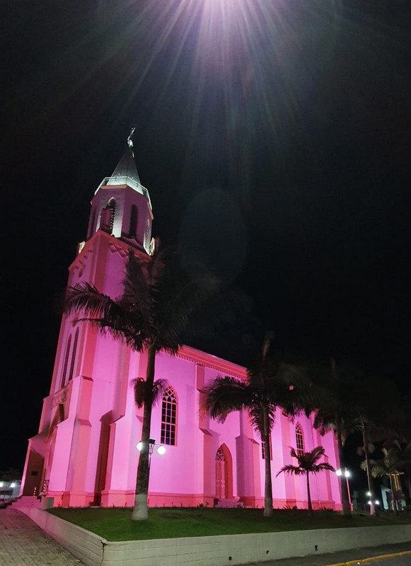 19 de outubro marca o Dia Internacional do Combate ao Câncer de Mama. Para celebrar a data, a Igreja Nossa Senhora da Medalha Milagrosa de Itaiópolis-SC é iluminada de rosa, em apoio e incentivo à tantas mulheres que vivenciaram a doença ou por ela são acometidas.