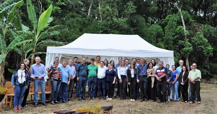 Os anfitriões Edemar Seidel (Alemão), Julieta e família, recepcionaram o prefeito Reginaldo Fernandes e demais autoridades, parceiros envolvidos, instituições, agricultores e patrocinadores.