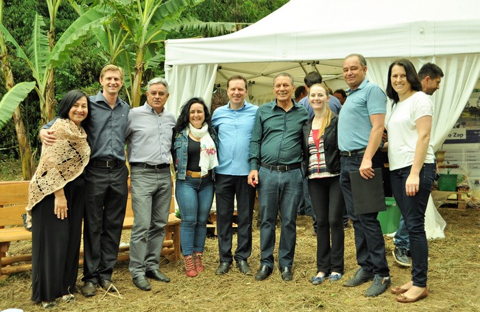 Os anfitriões Edemar Seidel (Alemão), Julieta e família, recepcionaram o prefeito Reginaldo Fernandes e demais autoridades, parceiros envolvidos, instituições, agricultores e patrocinadores.