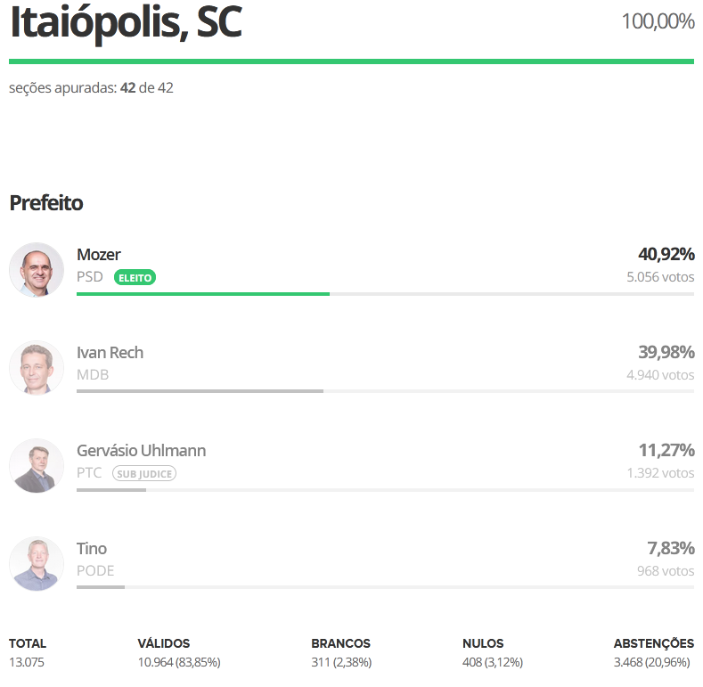 Com 100% das urnas apuradas, Itaiópolis-SC já possui o nome dos prefeito eleito.