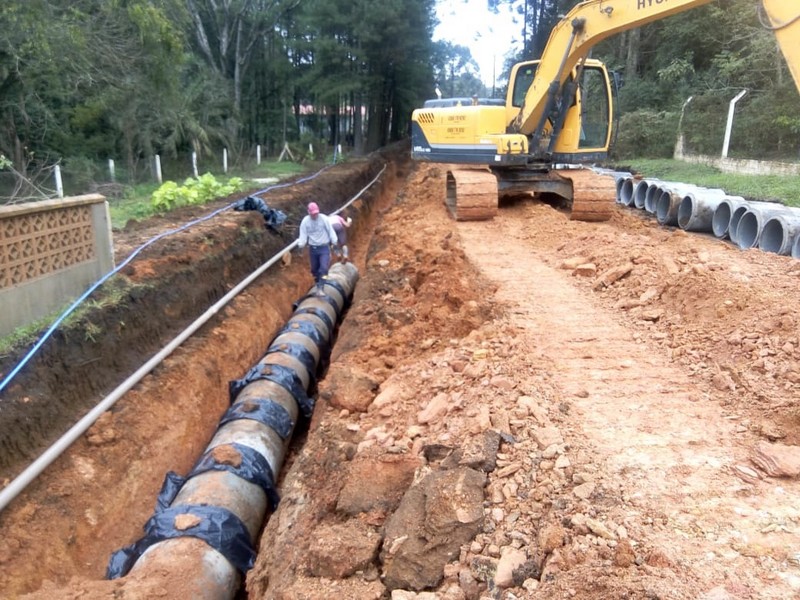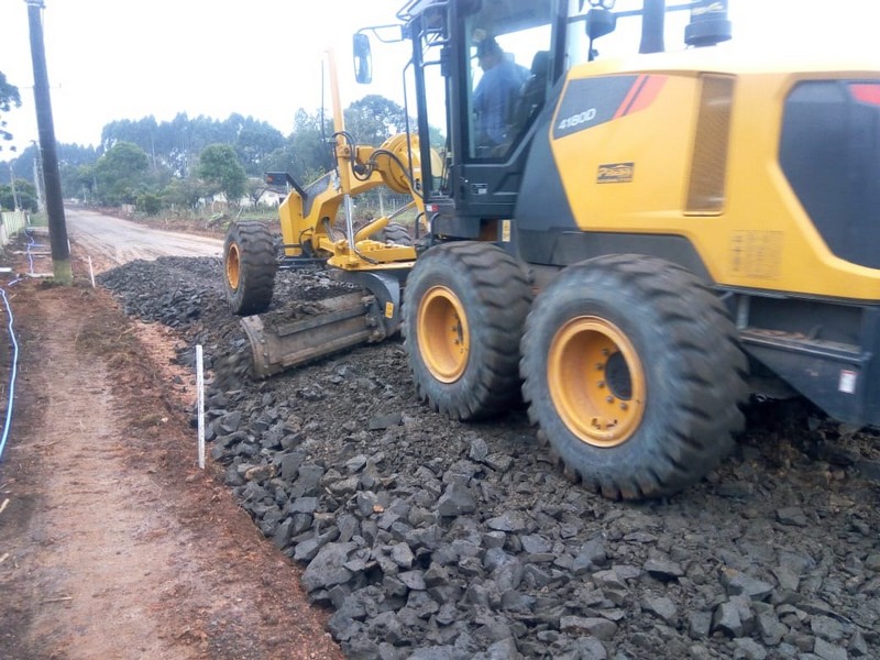 Já foi realizada toda a tubulação da drenagem pluvial, a base com pedra pulmão, complemento da base, está em construção às bocas de lobo, após será feito o meio-fio, a pintura de ligação e enfim a camada do asfalto.