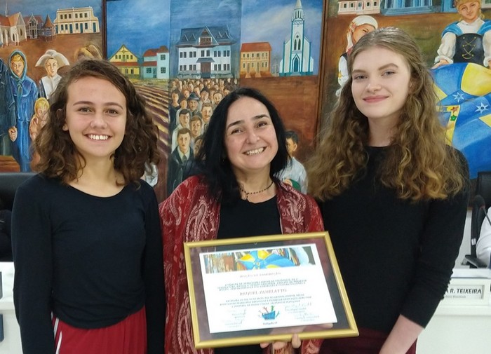 Em alusão ao dia do Artista Pintor, comemorado no dia 5 de maio, os vereadores mirins de Itaiópolis homenagearam a pintora Raquel Zenelatto.