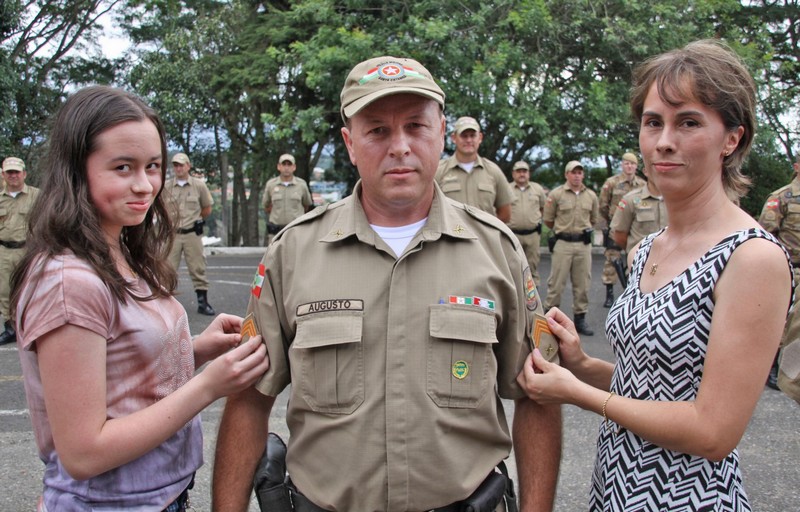 Em seguida foi realizada a promoção à graduação de 3º sargento PM dos seguintes policiais militares: cabos Aurélio Markiv, da Guarnição Especial de Mafra, Dirceu Augusto Schafascheck, do Grupamento de Itaiópolis, Ronaldo Cesar Paes de Farias e Adilson Alves Valente, do Grupamento de Papanduva e Marcos Roberto de Souza Pinto, do Grupamento de Monte Castelo.