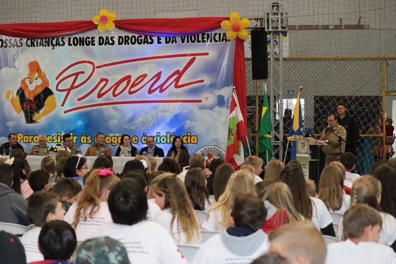 No último dia 5 – sexta-feira – foi realizada a formatura do Programa Educacional de Resistência às Drogas e à Violência (Proerd). 318 alunos do 5º ano do ensino fundamental de Itaiópolis se formaram.