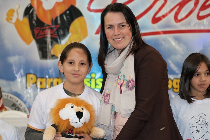 A formatura foi encerrada com a presença do mascote leão Daren e com a canção do Proerd.