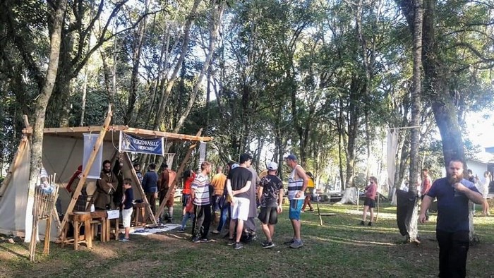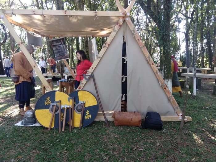 As barracas Vikings da VelhaArt de Thiago Pensak e os móveis rústicos de Mateus Uhllmann ambientaram o bosque.