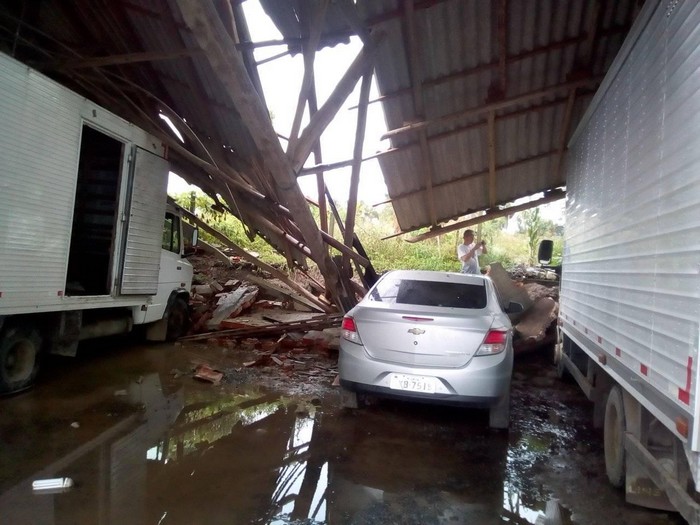 Por volta das 15h45 da tarde da quinta-feira 24, os Bombeiros Voluntários foram informados de que devido a uma forte chuva com vendaval, veio a cair a cobertura de um galpão, que servia de garagem de veÃculos e também na mesma estrutura, havia o estoque do mercado do mesmo proprietário, que também foi atingido.
