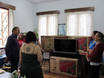 Na manhã da última sexta-feira 08, ocorreu a entrega de 6 (seis) televisores da marca Philco no tamanho de 40 polegadas a cinco unidades escolares do município de Itaiópolis. As unidades foram contempladas com os televisores, pois era de grande necessidade das mesmas. Quem recebeu os aparelhos foram as diretoras das unidades escolares, que relataram ser realmente um presente de grande valia para suas crianças.