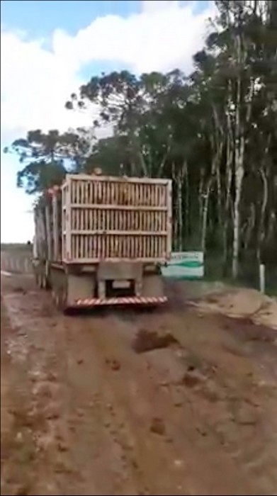 No vídeo não se consegue enxergar o asfalto, a SC-477 parece mais uma estrada de chão de tanto é o barro em cima da pavimentação.