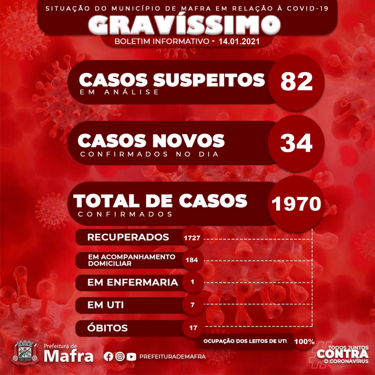A Secretaria de Saúde de Mafra, por meio da Vigilância Epidemiológica, confirmou nesta quinta-feira (14) a ocorrência de mais um óbito por Covid-19.