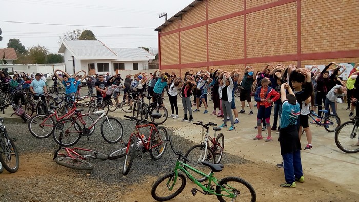 Aproximadamente 250 pessoas, entre alunos, pais e amigos participaram na manhã de domingo (27), do 1º Pedala Mario Goeldner, percorrendo 4,8 km pelas ruas dos bairros Vila Ferroviária, Argentina, Buenos Aires e Jardim América.