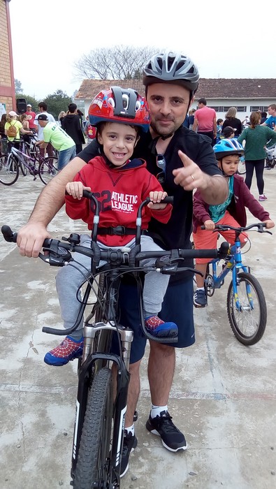 Diego Plonkoski levou o filho Juan Guilherme de 7 anos para o passeio. Ele que é da geração bicicleta e bola quer que os filhos também possam viver momentos de lazer como ele viveu. E por ser um evento no bairro disse ser mais fácil participar. Par ele é muito importante estar presente nessas atividades pois também aproveita para conhecer os pais e amigos do filho, além de encontrar os vizinhos.