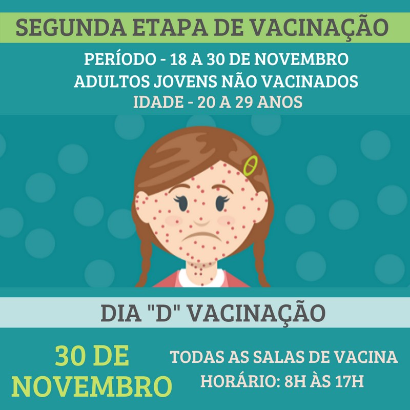 Esta segunda etapa visa imunizar adultos jovens não vacinados na faixa etária de 20 a 29 anos de idade. O dia D encerra a campanha em 30 de novembro. É válido ressaltar que, independentemente do público alvo nesta etapa ser limitado, todas as pessoas entre 6 meses e 49 anos de idade, e que não possuem registro da vacina de sarampo, devem procurar as unidades de saúde para averiguar a sua condição vacinal.
