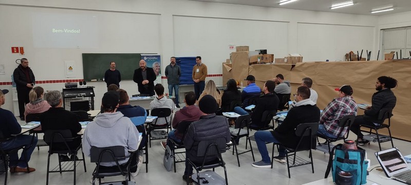 Estão participando agricultores de Mafra, representantes de pequenas agroindústrias e de órgãos públicos que atuam junto aos agricultores, como Cidasc e INCRA, além de técnicos da Escola Agrícola.
