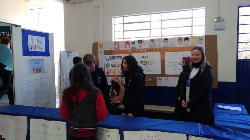 No dia da Feira da Interação os professores e alunos dedicaram-se a apresentar todo o conhecimento adquirido com os temas trabalhados, como bullyng, reciclagem, diversidade cultural, saúde, literatura, cultura, religião, entre diversos outros.