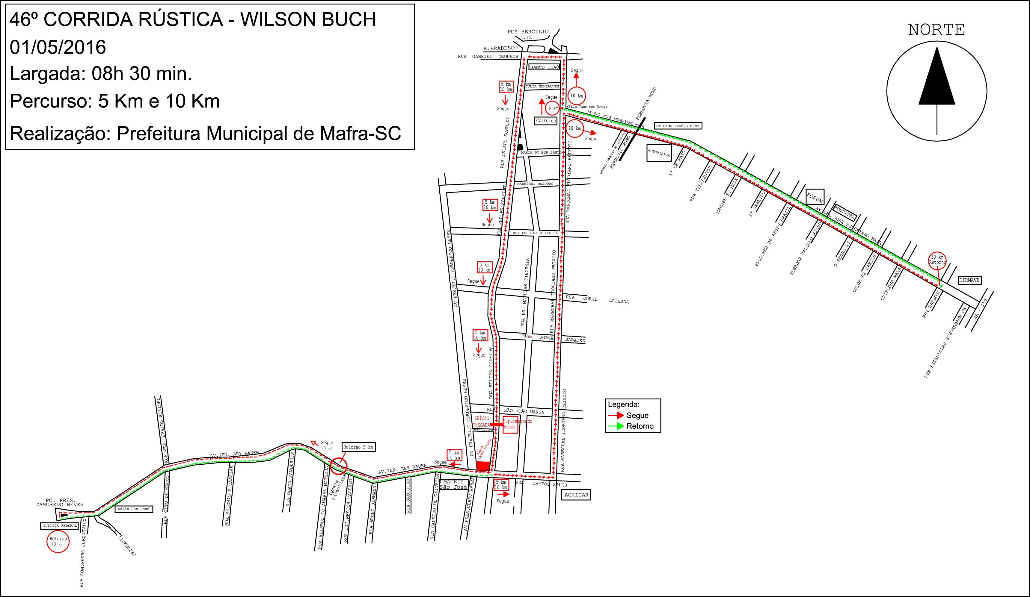 Tudo pronto para a 46ª Corrida Rústica Wilson Buch que acontece no dia 1º de maio (Dia do Trabalhador). Para esta edição foram ofertadas 1000 vagas que foram preenchidas em apenas três dias. Atletas de Santa Catarina das cidades de Mafra, São Bento do Sul, Rio Negrinho e demais da região, além de outros estados garantiram seu lugar na corrida. Este ano os atletas da categoria adulto puderam optar por percurso de 10 ou cinco km. Já o percurso infantil contempla 2.700m. A largada e chegada acontecem em frente ao Supermercado Belém, no Alto de Mafra. A largada da categoria principal – masculino e feminino – cinco e 10 km – será à s 8h30min. Já a criançada larga à s 10 horas. O tempo máximo para concluir a prova de 10 km será de 1h30min.