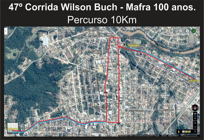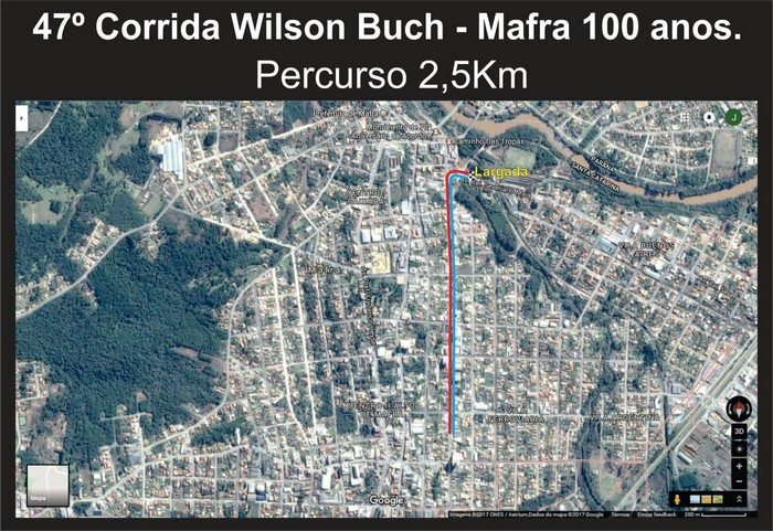 A 47ª Corrida Rústica Wilson Buch “Centenário de Mafra” terá percursos de 10km e 5km (adultos) e 2,5km e 1,2km (infantil), com largada e chegada na Praça Ferroviário Miguel Bielecki, Avenida Coronel Severiano Maia, s/n. Todos os atletas inscritos regularmente na prova que cruzarem a linha de chegada recebem uma medalha de participação. Para esta edição da corrida a Prefeitura de Mafra está ofertando aos vencedores prêmios no valor de R$ 14.200,00 mais troféu, a serem divididos entre as categorias adultas (acima de 15 anos). Já para a infantil serão ofertados troféus do 1º ao 3º lugar de cada categoria.