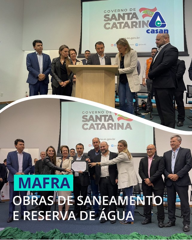 Nesta segunda-feira (2), a presidente da CASAN, Roberta Maas dos Anjos, e o governador Carlos Moisés assinaram a autorização para obras em saneamento e abastecimento em Mafra. São mais de R$ 23 milhões de investimento no sistema de esgotamento sanitário e instalação de novos reservatórios de água.