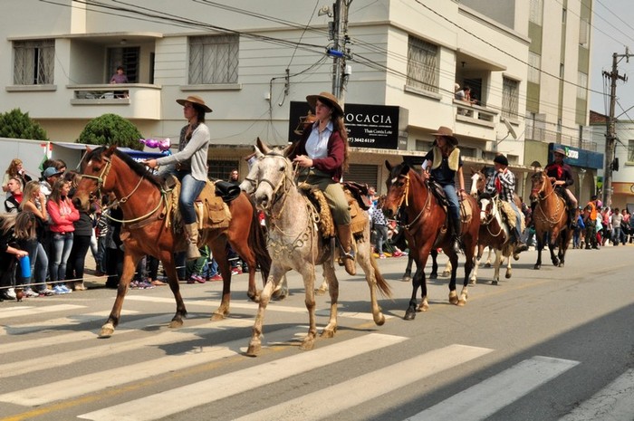 Roteiro da Cavalgada: SaÃda da praça ferroviário Miguel Bielecki sentido centro, contornando a praça HercÃlio Luz, subindo a rua Felipe Schmidt até a praça Lauro Mueller, descendo na rua Campos Sales e retornando pela rua Marechal Floriano Peixoto até as festividades. Será servido almoço campeiro (gratuito), para os participantes inscritos na Cavalgada, no Espaço Tropeiro da Festa das Etnias. Para os demais participantes da festa haverá Food Trucks e Feira da FamÃlia com comidas tÃpicas a preços acessÃveis.