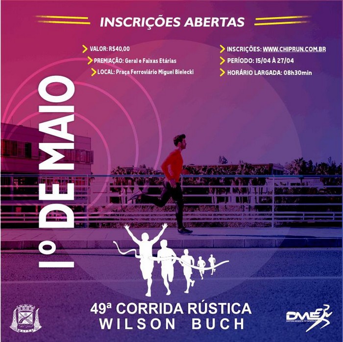 As inscrições já estão abertas pelo endereço www.chiprun.com.br ao custo de R$ 40,00 e encerram dia 27 de abril. O limite de vagas é de 500 participantes. A largada será às 8h30 na Praça Ferroviário Miguel Bielecki. Serão cerca de R$10 mil em prêmios.