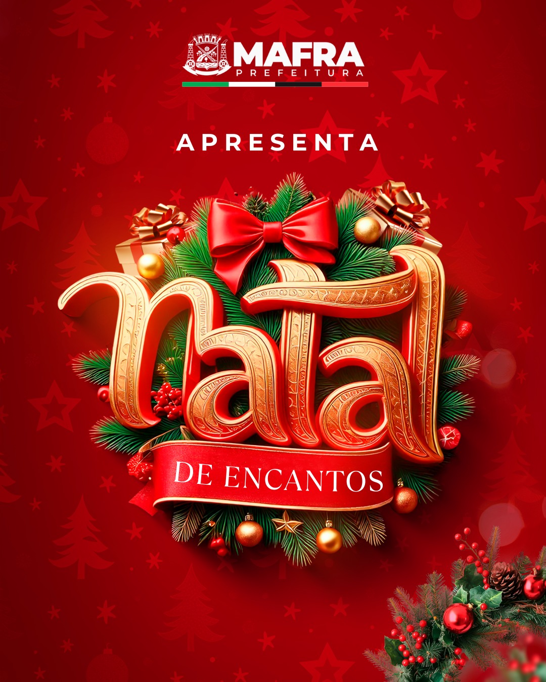 Mafra já está em clima de Natal! Vem aí o Natal de Encantos 2025, com uma programação cheia de magia para toda a família — de 1 a 22 de dezembro!