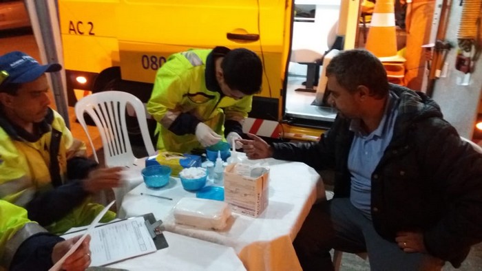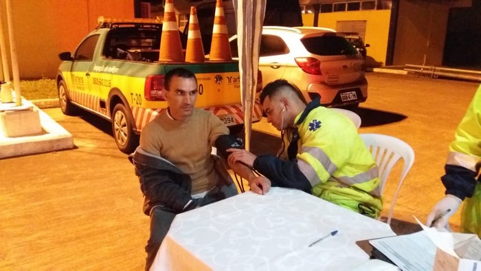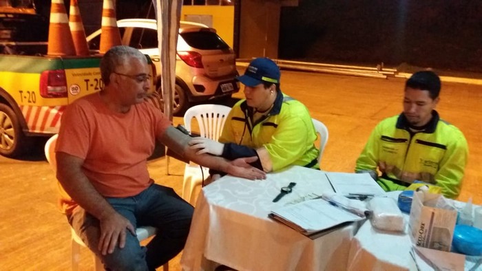 A equipe de atendimento pré-hospitalar da concessionária fez uma breve avaliação de saúde com a aferição da pressão arterial e do IMC (índice de massa corpórea). Na oportunidade também foi realizada inspeção veicular de segurança nos caminhões, com troca de lâmpadas queimadas de faróis e lanternas.